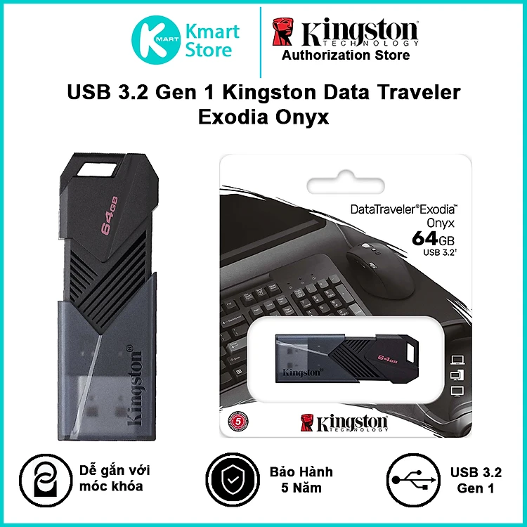 USB Kingston 3.2 Gen 1 DataTraveler Exodia Onyx USB Flash Drive 64G / 128G / 256G - Hàng Chính Hãng