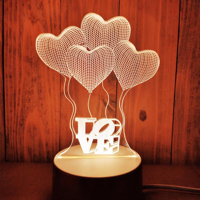 USB 3D LED Night Light Table Lamp for Home Bedroom Decor Warm Light