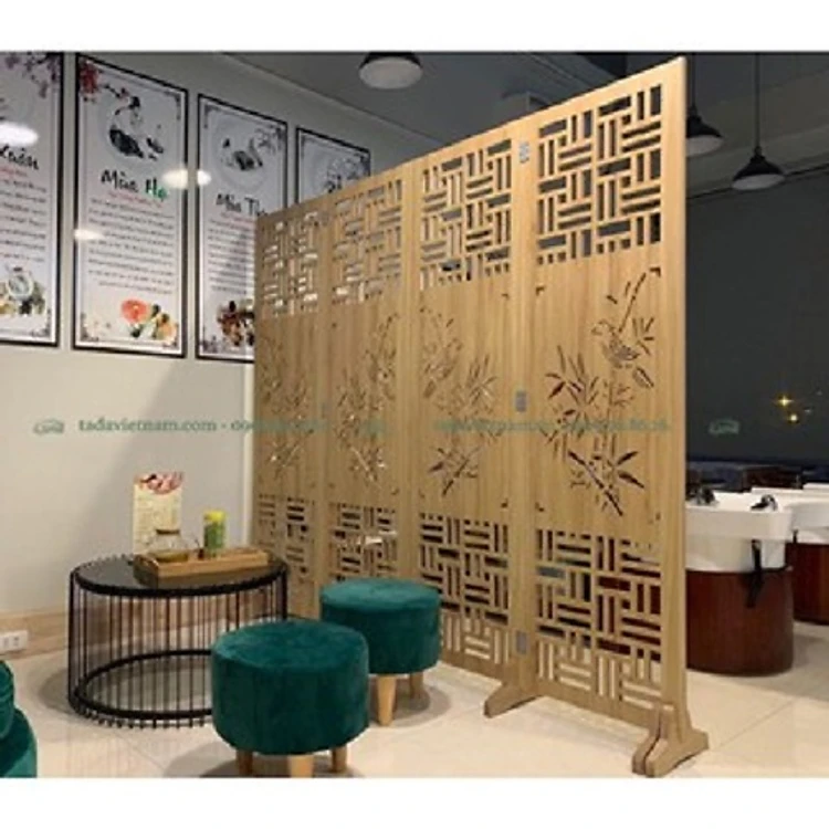 Vách ngăn bình phong vân gỗ hình cây trúc