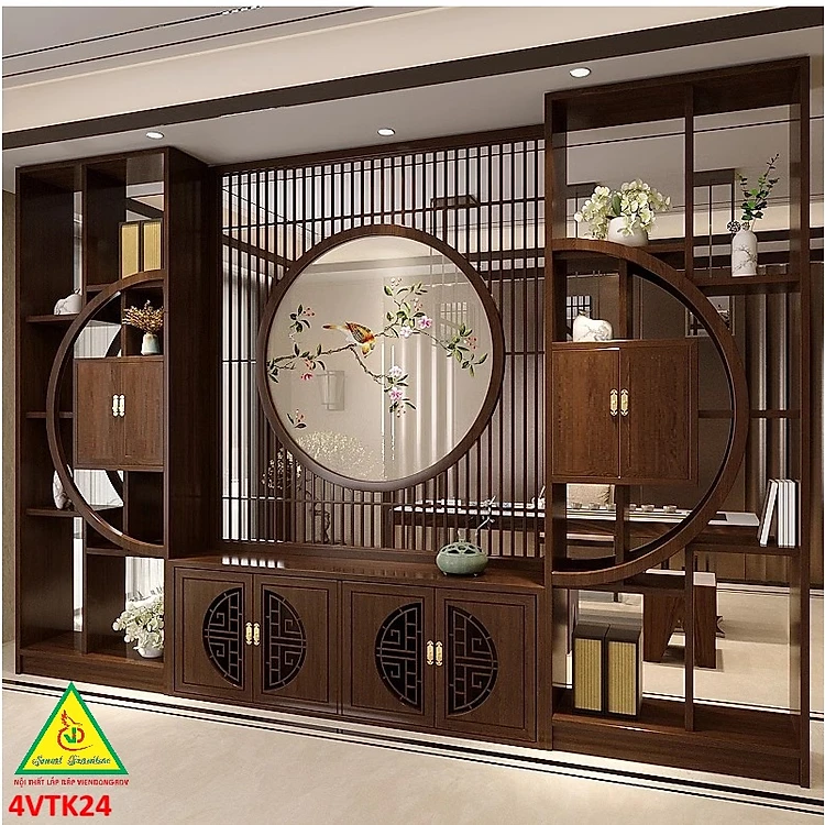 Vách ngăn phòng khách, vách ngăn tủ kệ bằng gỗm bình phong tranh 4VTK24 - NỘI THẤT LẮP RÁP VIENDONGADV