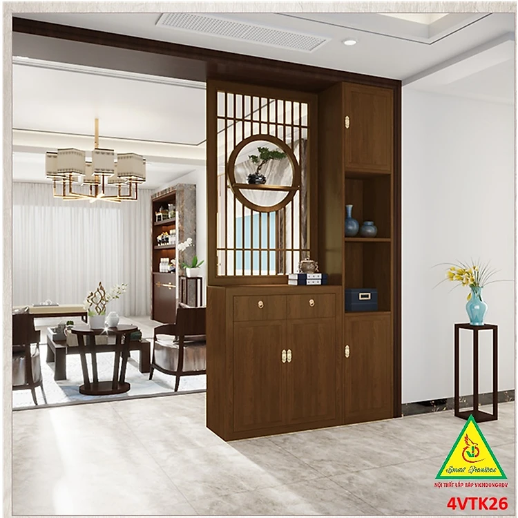 Vách ngăn phòng khách, vách ngăn tủ kệ bằng gỗm bình phong tranh 4VTK26 - NỘI THẤT LẮP RÁP VIENDONGADV