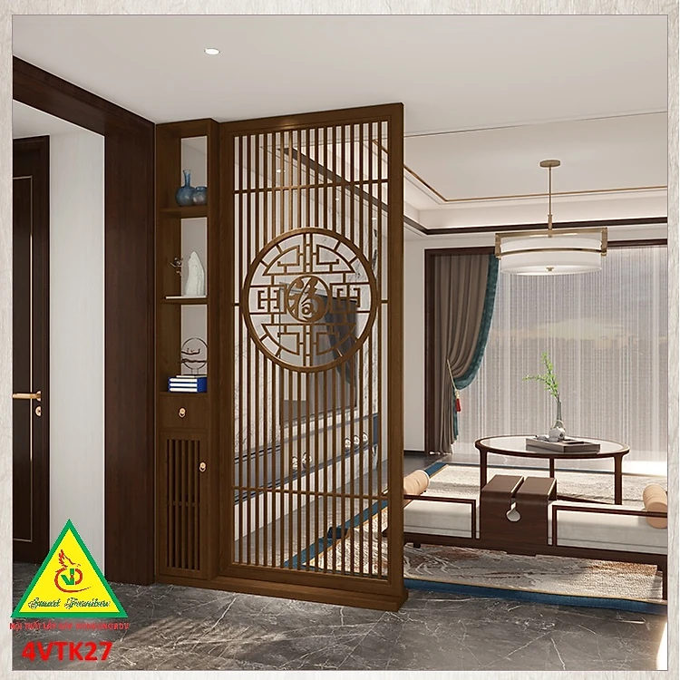 Vách ngăn phòng khách, vách ngăn tủ kệ bằng gỗm bình phong tranh 4VTK27 - NỘI THẤT LẮP RÁP VIENDONGADV