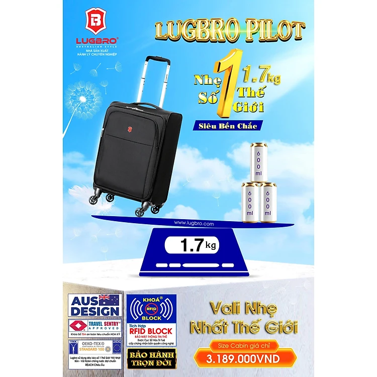 Khóa Số Vali LUGBRO TSA-APPROVED Chuẩn An Ninh Quốc Tế - Hàng Chính Hãng - Đen
