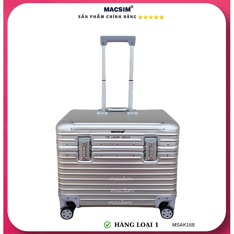 Vali hợp kim nhôm nguyên khối cao cấp Macsim Aksen hàng loại 1 MSAK168 Nhãn hiệu Macsim cao cấp 17 inches màu gold- bạc