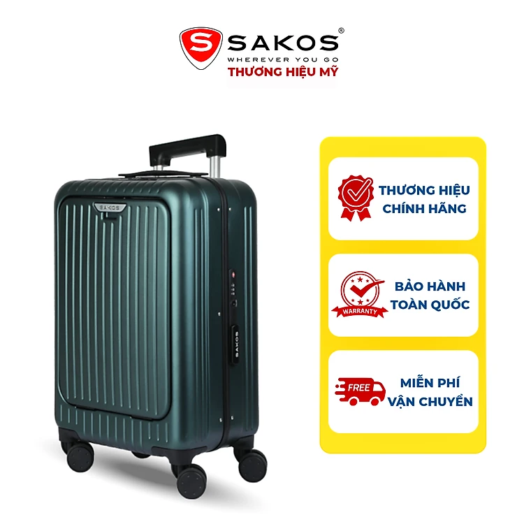 Vali Kéo Nhựa Du Lịch SAKOS MASTERY Khung Nhôm Z22 - Size S (20inch)/ Xách Tay (Cabin) - Khóa TSA - Nhựa PC