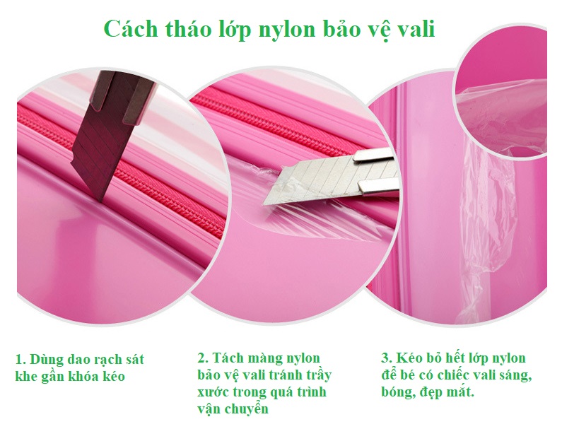 - Bánh xe có thể xoay 360 độ cho bé dễ dàng di chuyển vali.