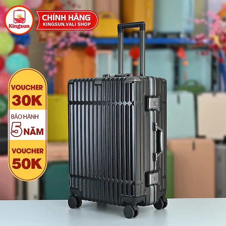 Vali khung nhôm khóa sập size 20/24, bịt 4 góc kim loại KS-051