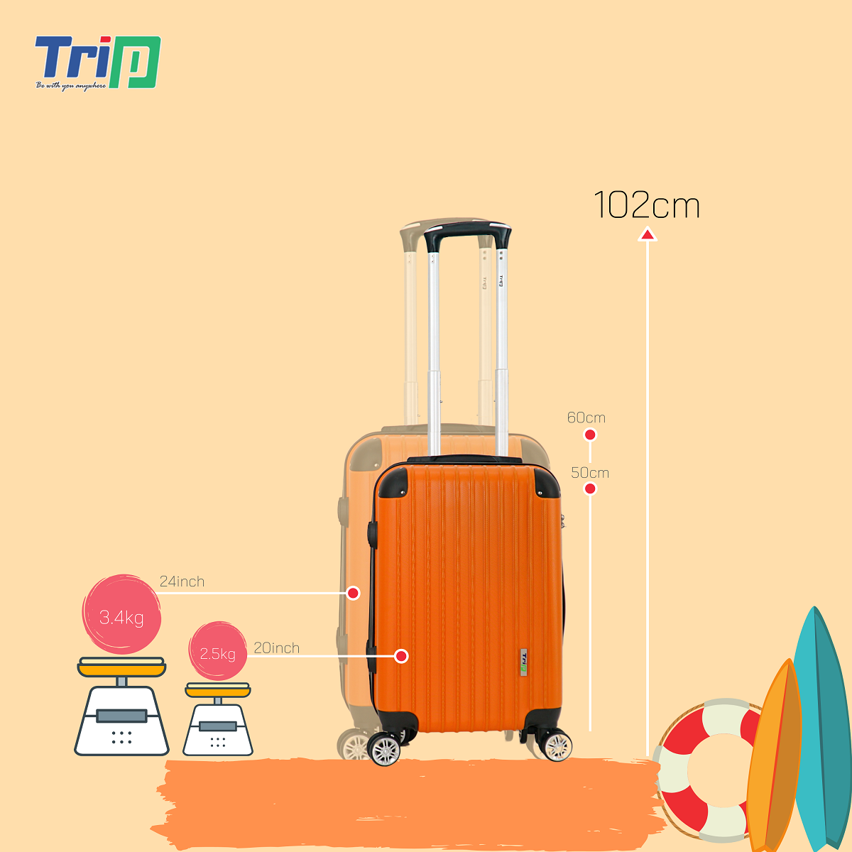Trọng lượng 2.5kg. Kích thước 20inch (50cm x 35cm x 21cm), cỡ nhỏ vừa đúng chuẩn kích thước có thể xách tay lên máy bay, đựng 7kg đến 10kg hành lý.