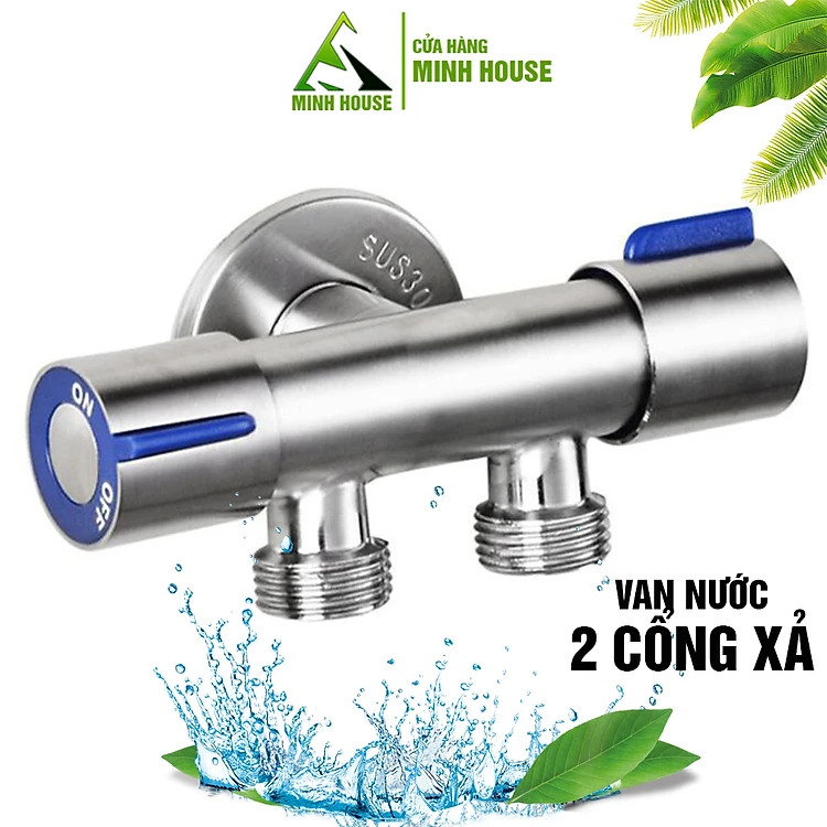 Van nước 2 cổng xả đóng mở riêng biệt Chất liệu Inox 304