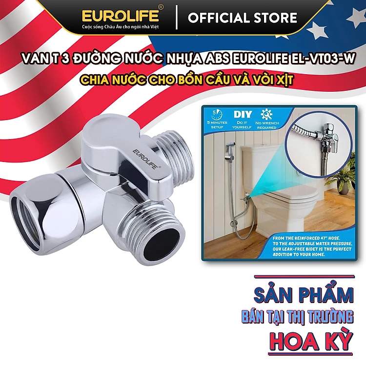 Van T 3 đường nước 21mm dùng chia nước cho bồn cầu và bộ xịt vệ sinh Eurolife EL-VT03 (2 màu: đen, trắng)