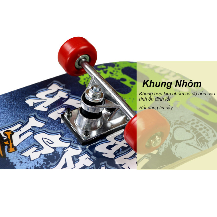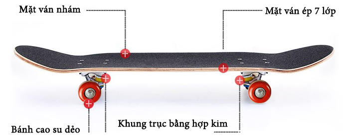 Ván trượt có bánh xe được làm bằng chất liệu cao su dẻo màu đục, chịu lực rất bền, có khả năng bám mặt đường cao. Cùng với trục bánh xe được cấu tạo từ hợp kim nhôm cao cấp, chịu lực cao. Khả năng chịu lực lên tới 100kg.