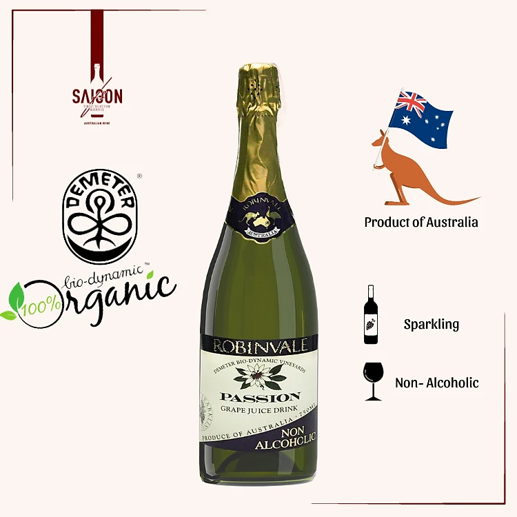 Vang sủi Robinvale Grape Sparkling 750ml - Không Cồn Organic - Passion (Chanh Dây)