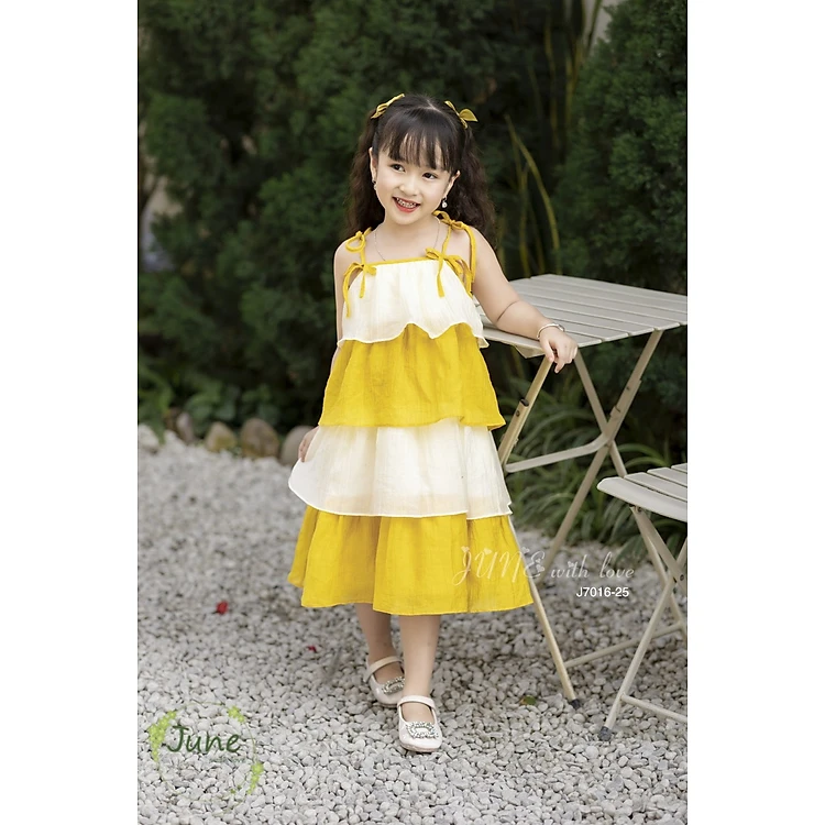 Váy 2 dây cho bé gái 1-10 tuổi nhiều tầng phối màu hàng thiết kế vải tơ nhẹ thoáng mát thấm hút mồ hôi