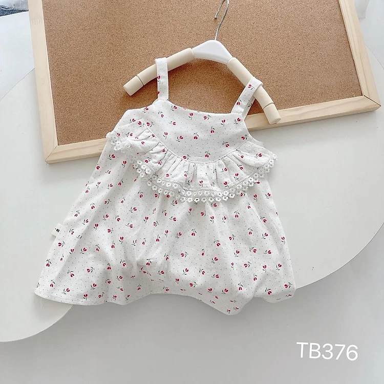Váy 2 dây hoa nhí xinh yêu cho bé gái, chất thô cotton mềm mát, size 8 - 23 kg