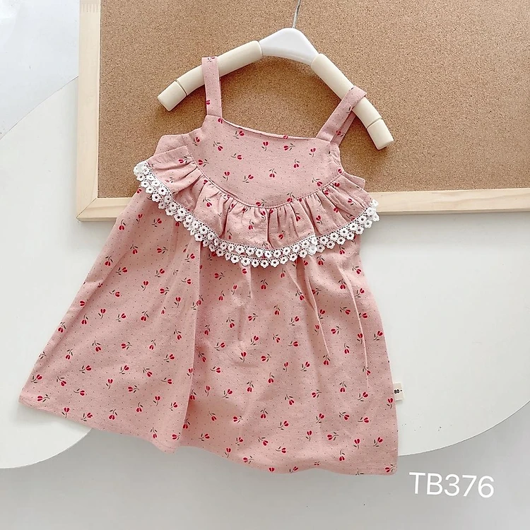 Váy 2 dây hoa nhí xinh yêu cho bé gái, chất thô cotton mềm mát, size 8 - 23 kg