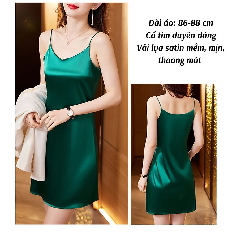 Váy 2 dây váy ngủ lụa cổ tim chất lụa satin mềm, mịn thoáng mát VN0003