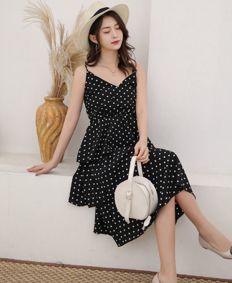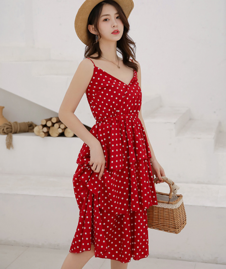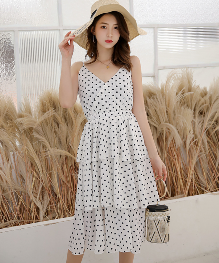 Váy Ba Tầng Hai Dây Chấm Bi MAY_DN051