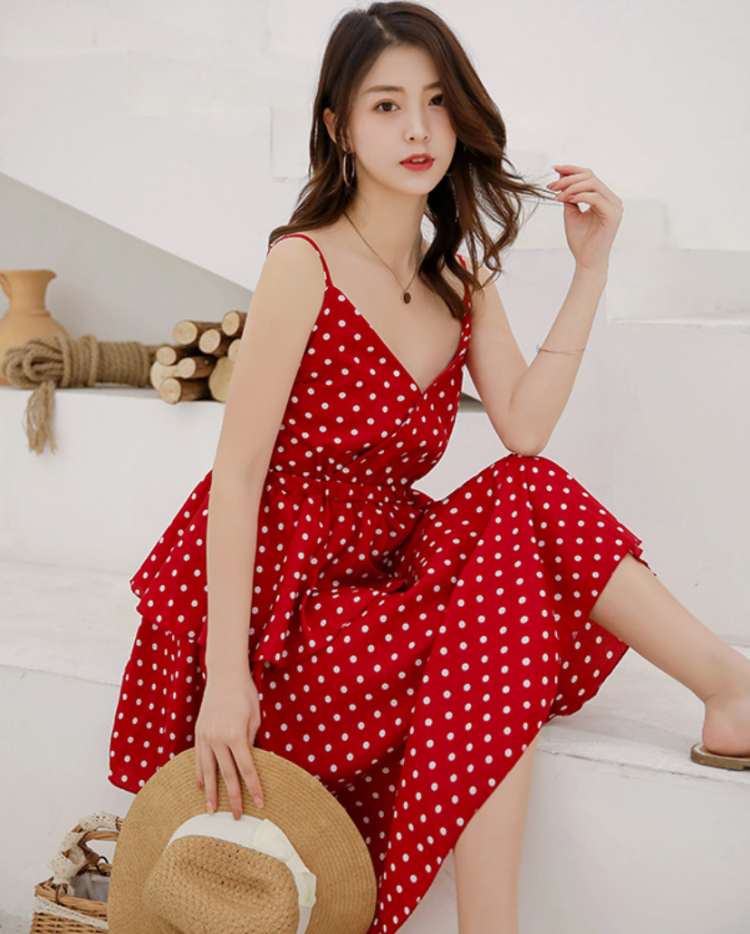 -      Tên sn phm: Váy Ba Tầng Hai Dây Chấm Bi MAY_DN051