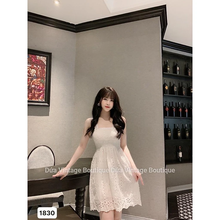 Váy babydoll 2 dây chun ngực 1830 Hàng quảng châu cao cấp, Lên form dáng cực xinh.