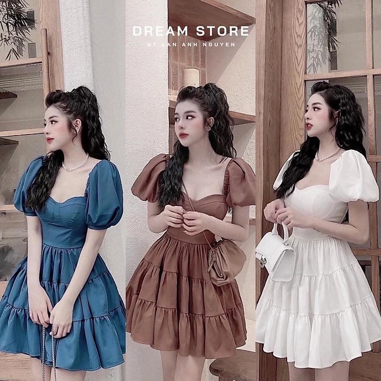 Váy Babydoll Tay Phồng Cổ Vuông Cup Ngực, Đầm Dáng Xoè Tay Phồng Siêu Xinh Có Ảnh Thật Kèm Video