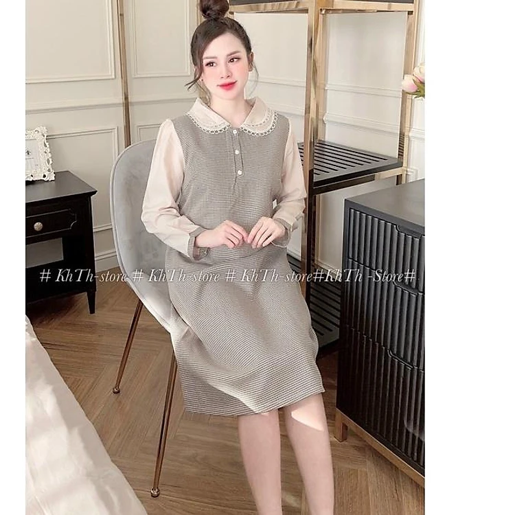 váy Bầu Công Sở, Đầm Bầu Thu Đông Phối Trắng