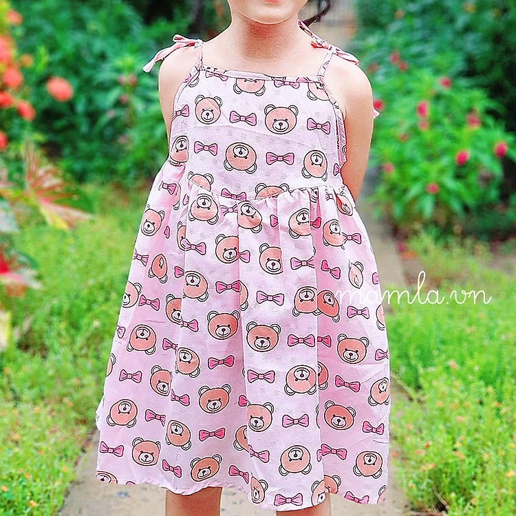 Váy bé gái đầm trẻ em 2 dây giá rẻ vải xô đũi nhẹ mát xinh xắn hình ảnh ngộ nghĩnh MamLa OP102