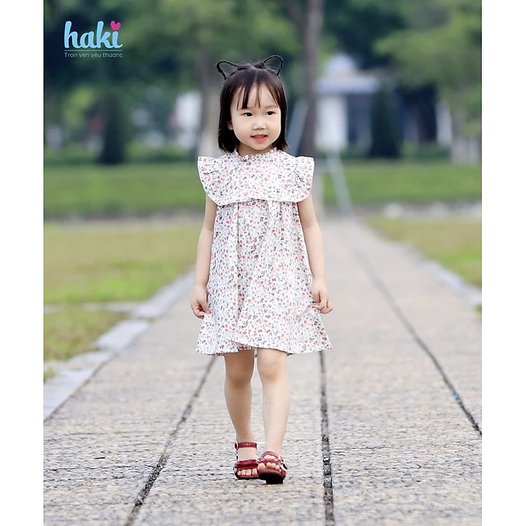 Váy bé gái hoa nhí bèo nhún trước ngực HK512, đầm hè cho bé gái cực xinh HAKI chất liệu Thô cao cấp, váy thiết kế cho bé gái từ 10 - 27kg
