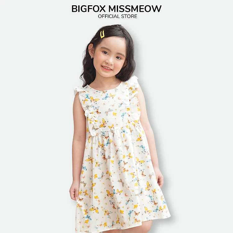 Váy Bé Gái Miss Meow Váy Thô Cho Bé Chất Cotton Size Đại Bèo Vai In Bướm (BF)