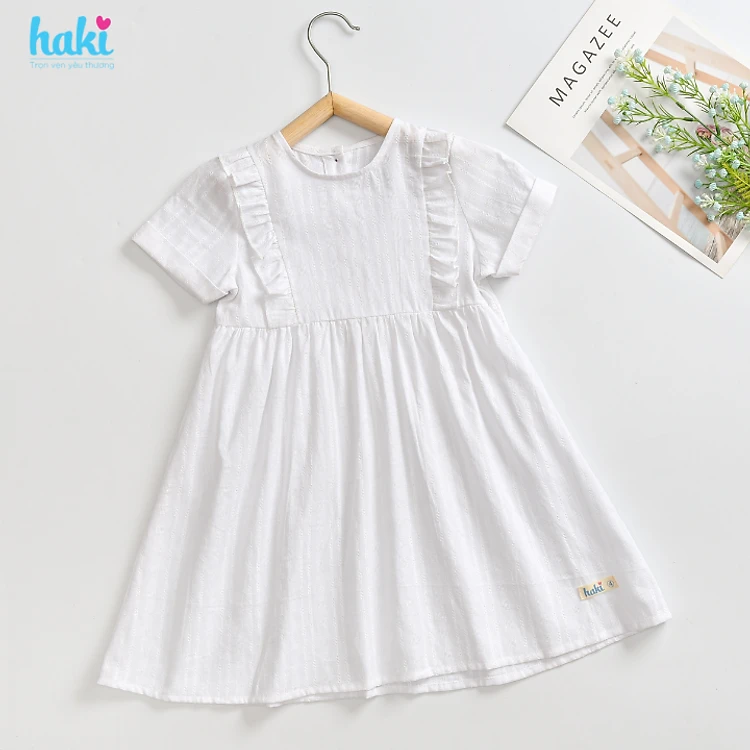 Váy bé gái trắng cộc tay bèo ngực HAKI, đầm bé gái, váy mùa hè cho bé gái, váy hè, đầm thiết kế cho bé HK524 (10-27kg)