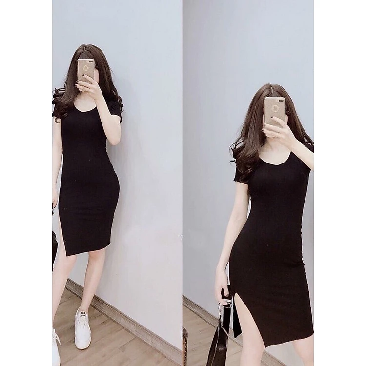 · Váy body đẹp, Váy body cổ tim xẻ đùi nhiều màu