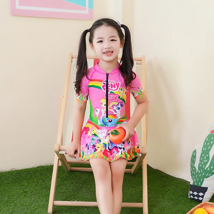 Chất liệu : Thun bơi Cao cấp, nylon co giãn 4 chiều Màu sắc bắt mắt dễ thương, quần liền váy kín đáo