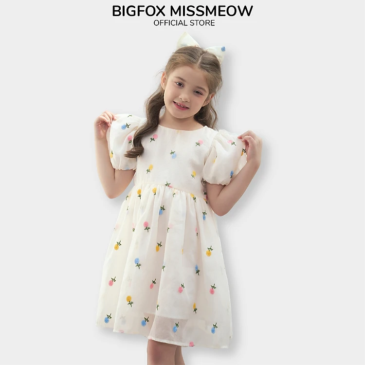 Váy cho bé gái dự tiệc Bigfox Miss Meow, đầm tiểu thư công chúa size đại màu trắng thêu hoa kiểu Hàn 7,9,11 tuổi 30kg