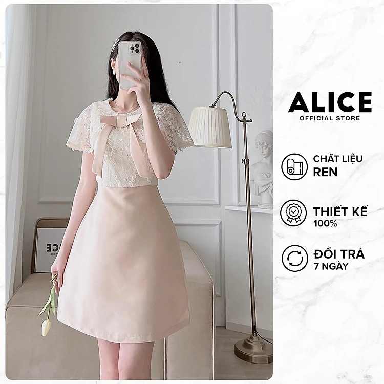 - Tên sản phẩm: Váy Chữ A Cổ Ren Tiểu Thư ALICE Chất Vải Ren Lót Lụa Phối Chân Váy Tafta Cao Cấp Thanh Lịch V780