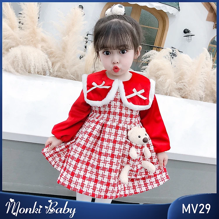 Set váy dạ bé gái lót lông cùng gấu bông nhỏ xinh xắn, chất dạ xù dày dặn, mềm đẹp, giữ ấm tốt cho bé mùa lạnh, dáng công chúa nhỏ dễ thương | MV29