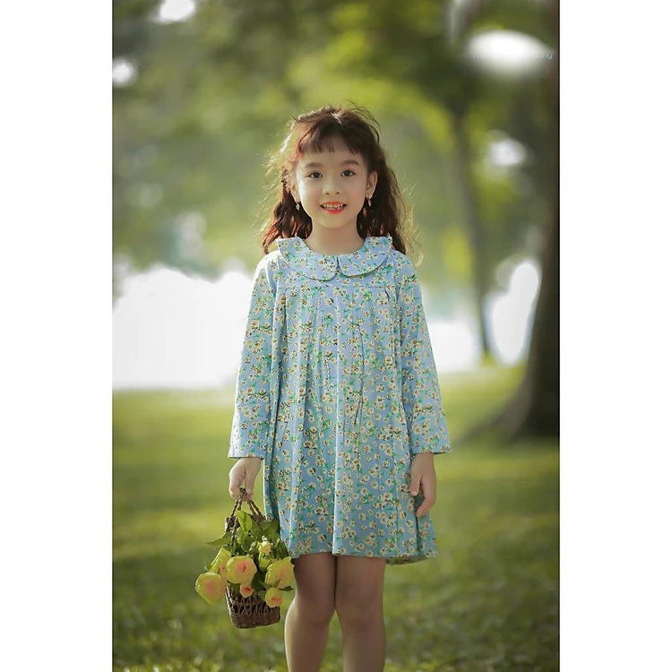 Váy dài tay cổ sen xếp li- hoa