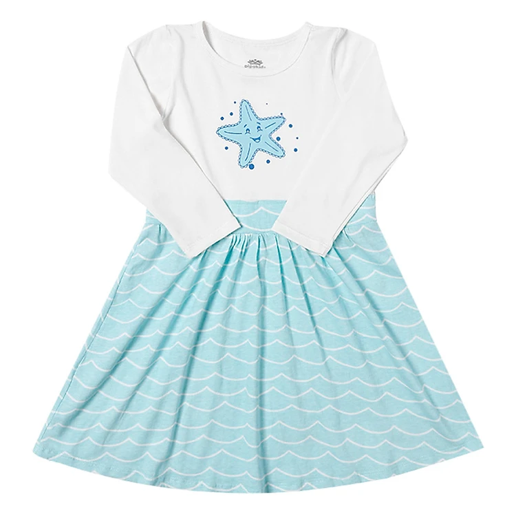 được may bằng chất liệu 100% vải thun cotton dày dặn và mềm mịn. Kiểu dáng tay dài với họa tiết sóng biển mang đến cho bé nét dễ thương, đáng yêu.
