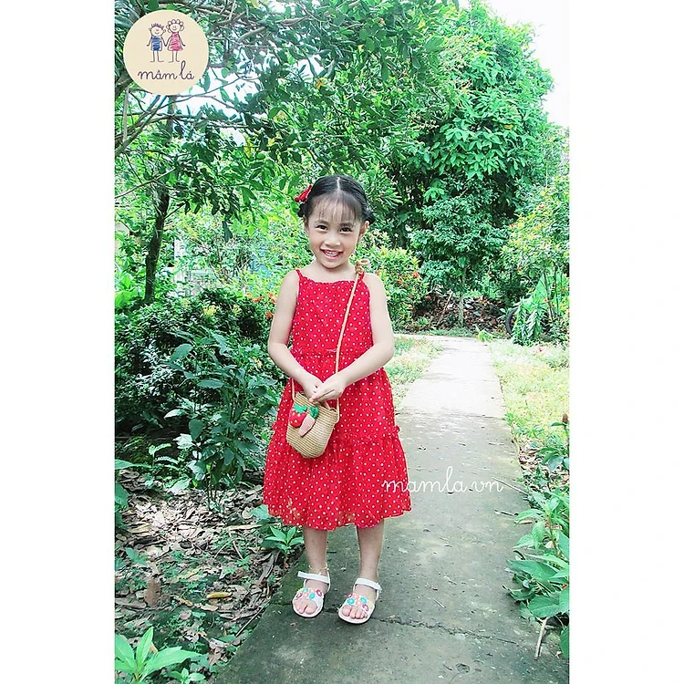 Váy đầm Bé gái Maxi hai dây chấm bi đi biển