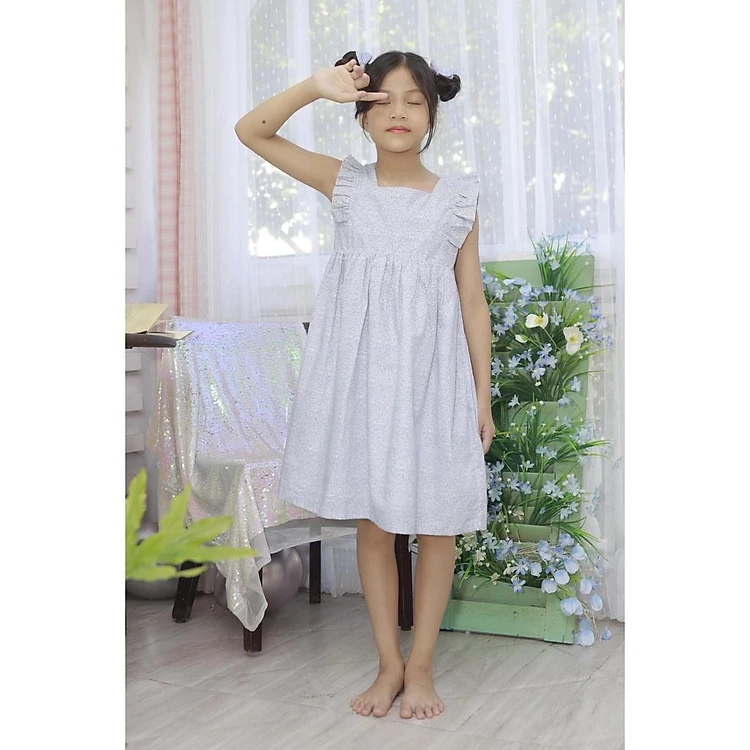 Váy đầm cánh tiên hoa nhí mầu xanh xám Sora Chan - M012