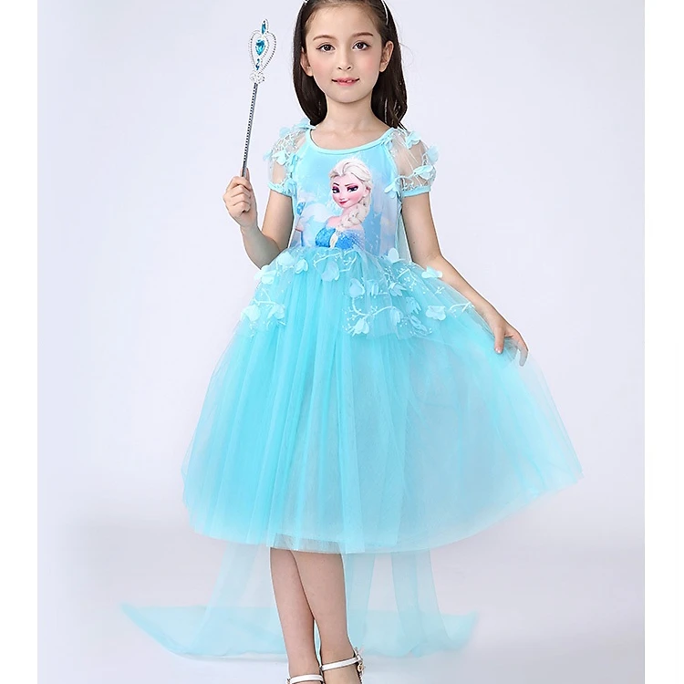 Váy đầm công chúa Elsa có tà dài chất voan mềm