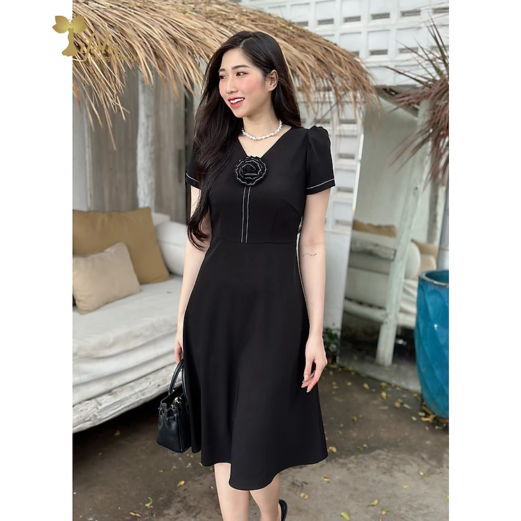 Váy đầm công sở TIFALU LD403 - Đầm trung niên dáng xòe thanh lịch