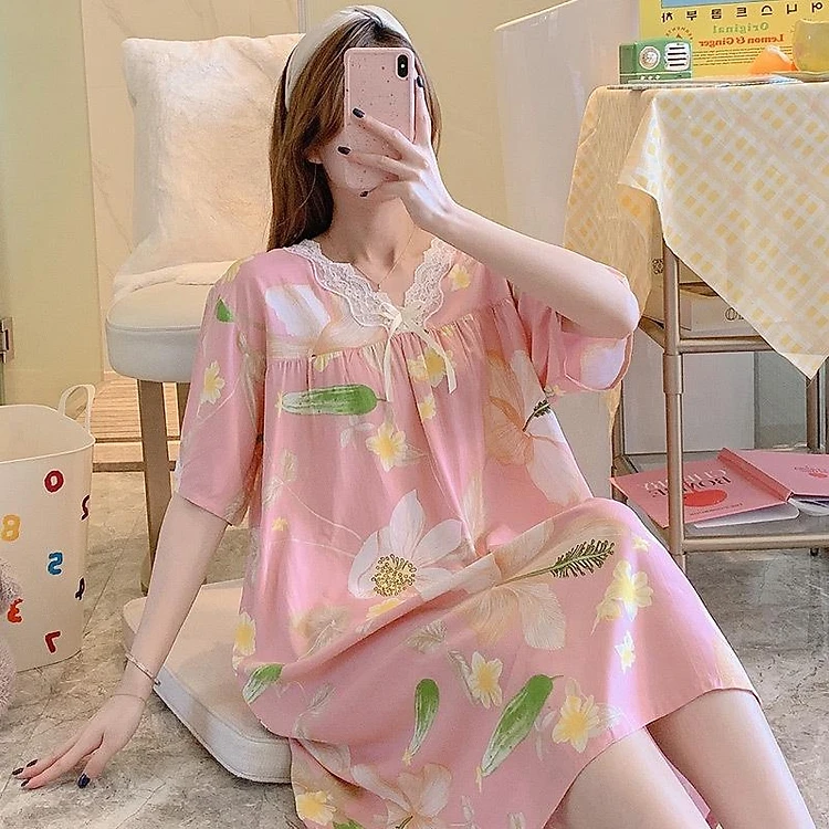 Váy/đầm nữ cộc tay cổ V phối ren vải lanh thoáng mát, dáng suông dài nhiều họa tiết freesize 45 - 65 kg