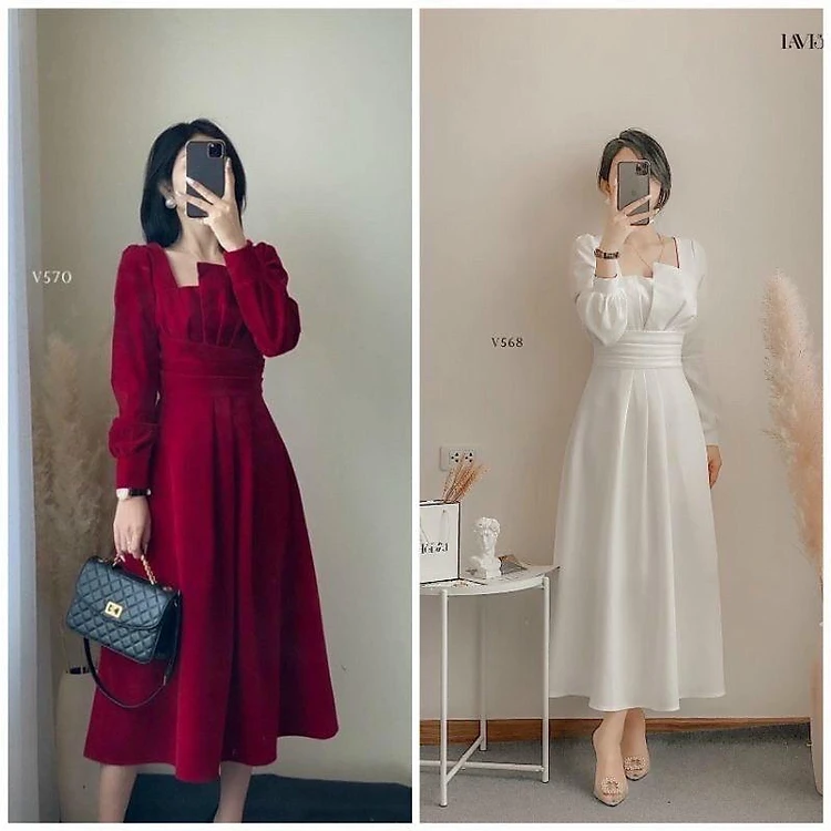 Váy đầm nữ dáng dài phối cổ cách điệu thích hợp mặc đi dự tiệc, đi chơi