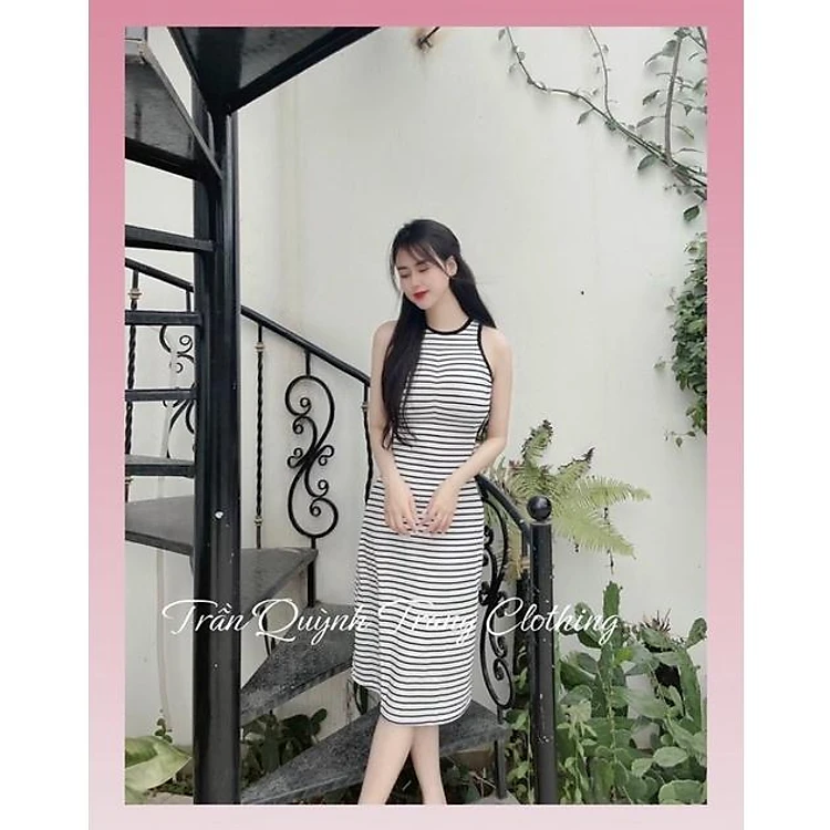 Váy,đầm ôm body sát nách kẻ và trơn dáng dài quỳnh trang shop