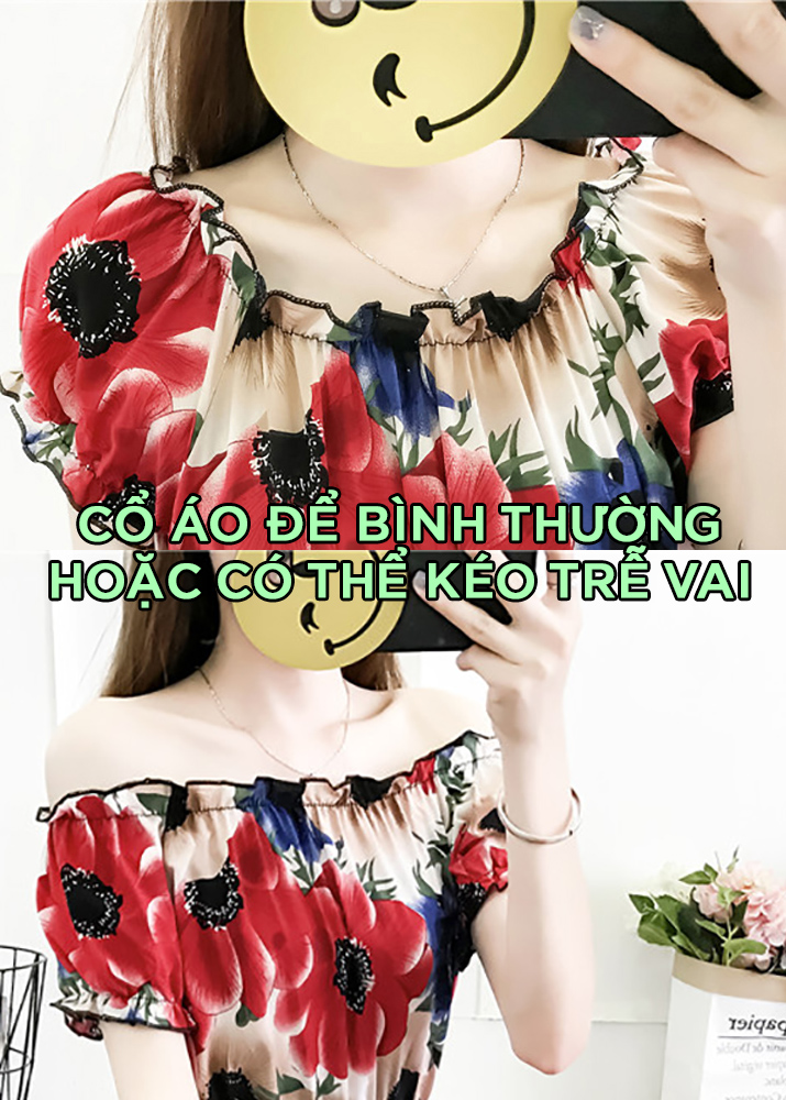 ★ Cổ áo có thể để thường hoặc kéo trễ vai rất nữ tính