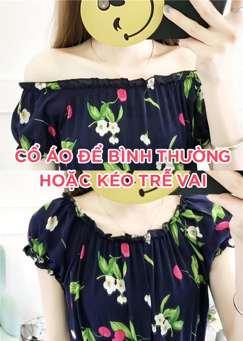 ★ Cổ áo có thể để thường hoặc kéo trễ vai rất nữ tính