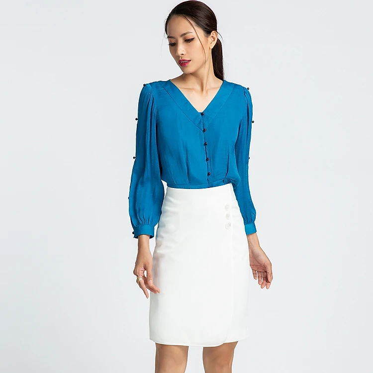 Chân Váy Ôm Công Sở Chân Váy Đắp Vạt Thời trang thiết kế Hity SKI029 (Trắng Kim Cương)