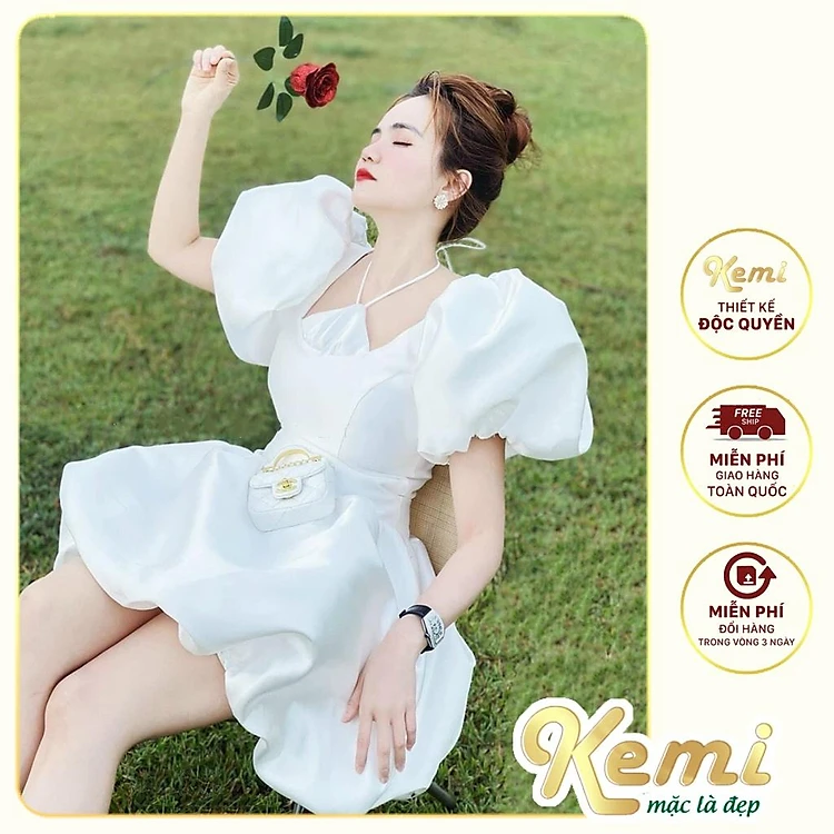 Váy dự tiệc cổ yếm dây tay lửng đầm bồng chất Tafta đi tiệc, đám cưới, hội nghị thiết kế