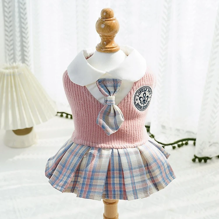Váy kẻ sọc Chó Mèo, Vải Len , Quần Áo cho Thú Cưng Dày ấm áp cho mùa đông