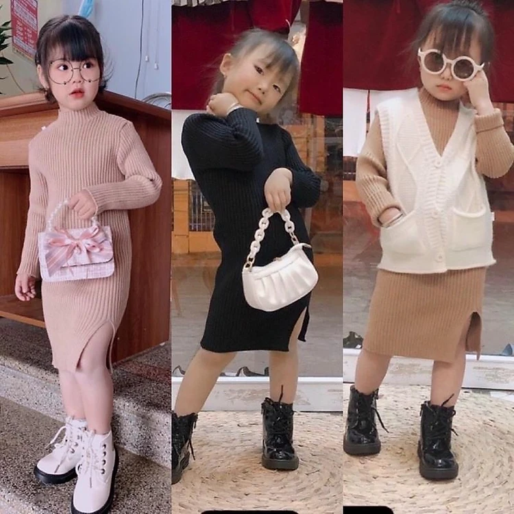 Váy Len body xẻ chân cho bé gái 10kg-32kg(2 đến 9 tuổi)