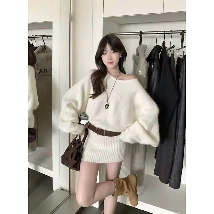 Váy Len Trễ Vai Kèm Thắt Lưng Nữ Dáng Đẹp – Thời Trang Nữ Hàn Quốc